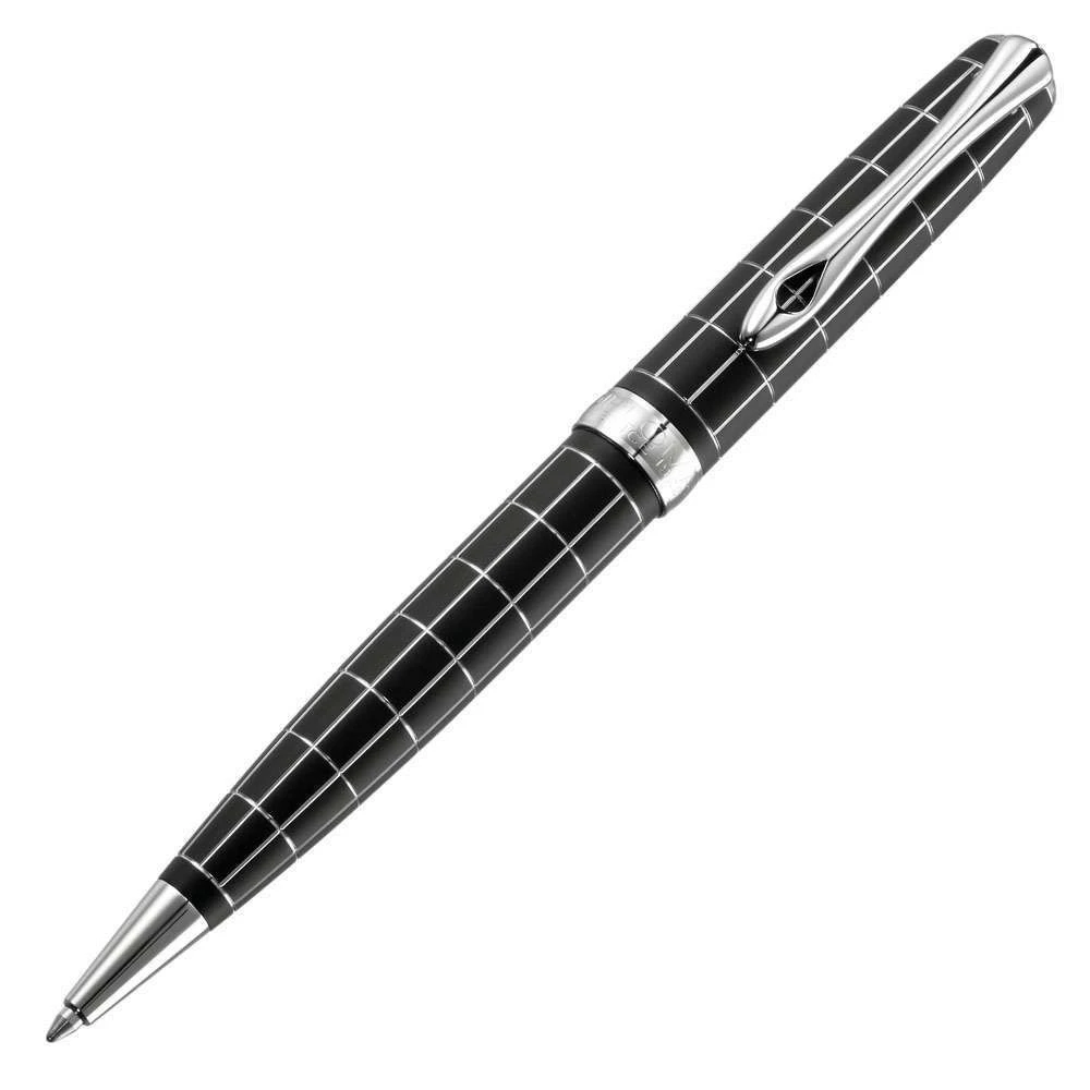 This ballpoint pen is equipped with a spring-loaded clip made of solid metal. The shape of the clip with stylised flower logo is typical of the Diplomat collection.