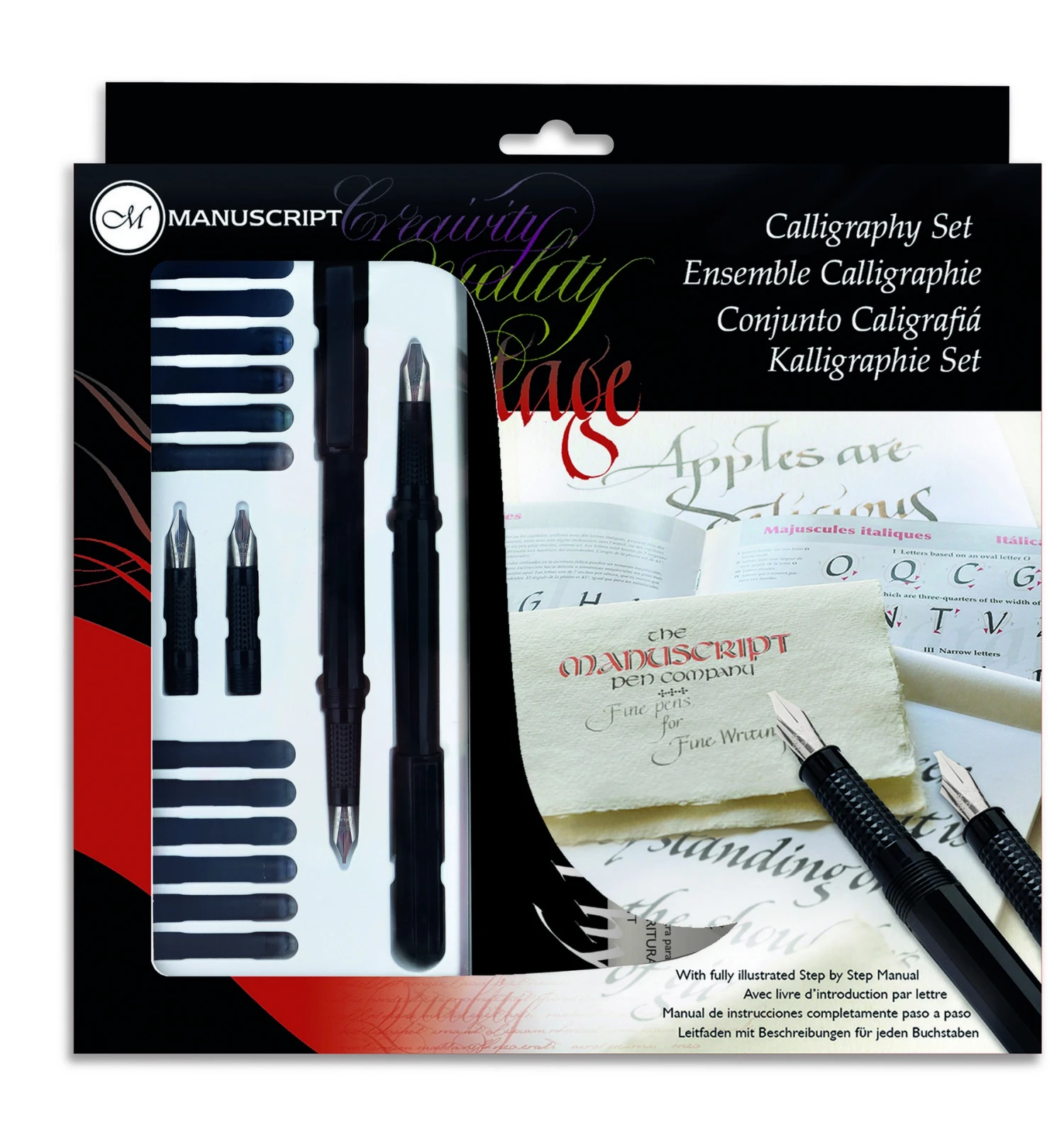 Manuscript’s calligraphy fountain pen sets meet the needs of all budding calligraphers. From beginners to the more advanced, each set offers a range of quality nibs, ink and fountain pens.