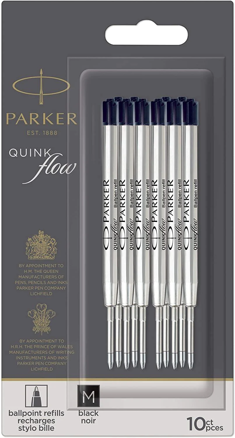 This Parker Quink flow refill has a medium point tip and will fit all Parker ballpoint pens including the Jotter, Vector, IM, Urban, Sonnet and Duofold.